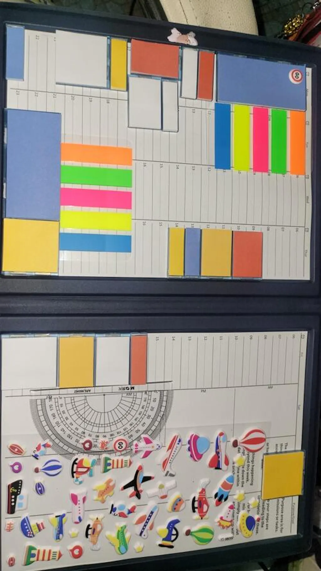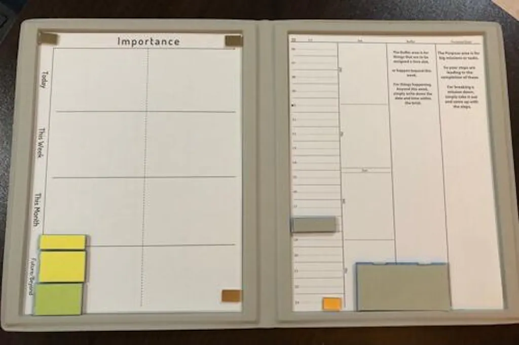 MoverBook is in two pages, instead of 50 pages or more. Things in immediate time span can be seen at a glance with focus. This space of high priority shelters what users regard with most value to them. Without flipping pages or scrolling, they can have the big picture in short. Movers can then be taken out at will and blueprints can be planned.